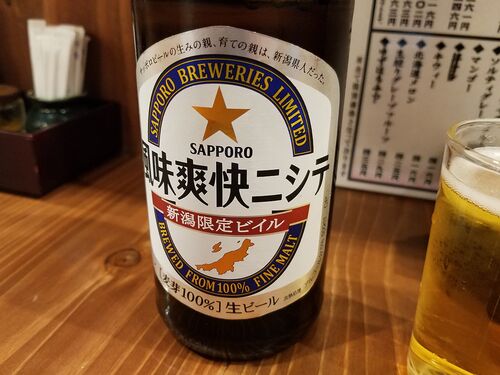 私は時々、新潟市方面でお仕事をさせていただくこともあります。 先日、新潟市内のお客さんとの打ち合わせを終えて、新潟駅万代口方面にある「安兵衛 にいがた花園店」さんにうかがいました(^-^) 最初にいただいたのは新潟限定ビイル「風味爽快ニシテ」です…